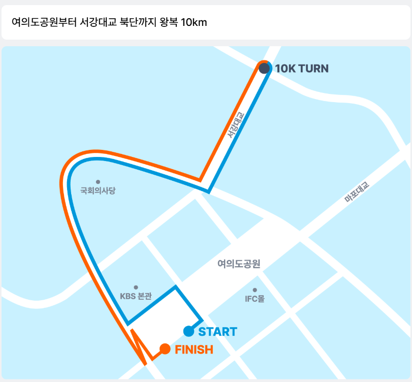 - 코스 : 여의도공원부터 서강대교 북단까지 왕복 10km